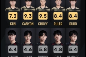 先鋒賽選手?jǐn)?shù)據(jù):KDA第一Canyon 前15分鐘經(jīng)濟(jì)差第一Chovy