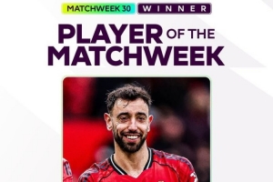 體育資訊3月18日訊 英超官方消息,曼聯(lián)中場B費當選聯(lián)賽第30輪最佳球員。