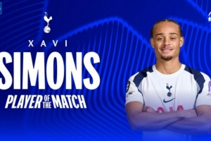 本場(chǎng)比賽哈維·西蒙斯梅開二度,賽后當(dāng)選歐冠官方評(píng)選出的本場(chǎng)比賽最佳球員。