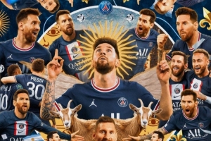 梅西達(dá)成職業(yè)生涯900球里程碑,法甲官方社媒曬出海報,對他表示祝賀,配文:“900球,The GOAT,梅西。”