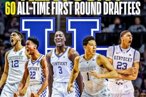 其中肯塔基大學有60個首輪簽、高居第一,像現役的就包含亞歷山大、濃眉、唐斯還有布克等人。而第二的是杜克大學,他們一共出品過59個首輪,第三的則是北卡的55個。