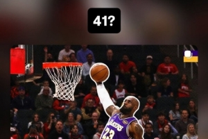 賽后,拉拉維亞轉發了詹姆斯的一張騰空海報,并寫道:“41歲?”