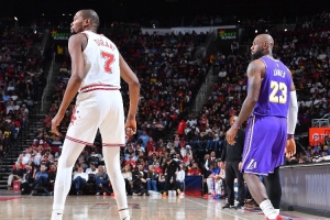 本場比賽,湖人球星詹姆斯上場34分鐘,14投13中得到30分5籃板2助攻1搶斷1蓋帽;火箭球星杜蘭特?上場38分鐘,11投7中得到18分6籃板4助攻2搶斷。