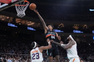 本賽季至今馬刺戰績為51勝18負,場均得119分,場均失分111.7分。上場比賽,馬刺客場132-104戰勝國王,取得3連勝,由于比賽早早失去懸念,首發陣容出戰時間均未超過25分鐘。文班亞馬18分8籃板3助攻,福克斯15分5籃板6助攻,哈里森·巴恩斯16分4籃板3助攻,迪倫·哈珀15分4籃板5助攻,尚帕尼和凱爾登·約翰遜分別砍下17分和18分。本賽季,馬刺主場26勝7負。進入2026年以來,馬刺主場15勝3負。馬刺攻防趨于穩定,外線防守輪轉能力明顯增強,不再懼怕對手的外線投射,而本隊的三分球命中率在全明星賽后更是沖至全聯盟第一。