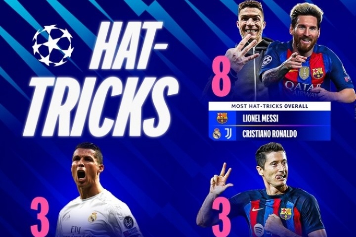 體育資訊07月11日訊 歐冠官方發布了歐冠歷史上球員上演帽子戲法的各項紀錄。