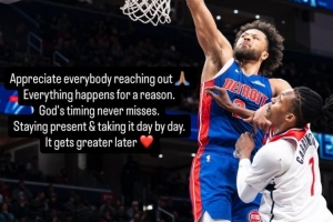 今天,坎寧安曬照并寫道:“感激每個聯系我的人。凡事皆有其因由。上帝的安排總是恰到好處。保持當下,一天一天堅持。我歸來之時會更出色?!?/p>