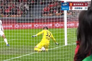 比賽第6分鐘,向余望搶點打門,劉殿座在門線上將球控制住。