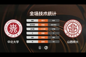 末節比賽,中北大學繼續試投三分球,王嘉輝終于命中第二記遠投,但這也是中北大學前四分鐘的唯一進球,山西師大又一次完成反超,雙方一直將比賽懸念打到最后,關鍵時刻范繼昂和胡遠航連續得分,李子超兩罰全中,賈保成搶兩分不中,最終中北大學66-64險勝山西師大迎開門紅。