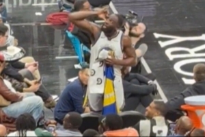 比賽中幾名老鷹隊球迷不停地高喊著:“追夢真爛!追夢真爛!”作為回應(yīng),追夢徑直走向替補(bǔ)席,瞇起雙眼——似乎是在尋找那些根本就不在那里的亞特蘭大老鷹隊總冠軍旗幟。