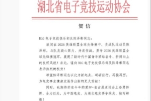 體育資訊3月23日訊 媒體人王瑋晨曬出湖北省電競協會祝賀信:
