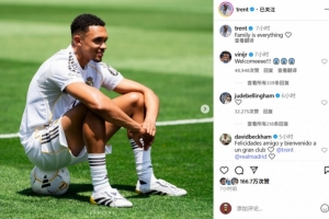 貝克漢姆在阿諾德的動態下方用西班牙語評論道:“恭喜朋友,歡迎來到一個偉大的俱樂部!”
