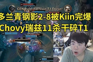 姿態看多蘭青鋼影2-8狂送被Kiin打出巨大對位差距,Chovy瑞茲11殺干碎T1:這把MVP只能給Kiin,他的塞恩是僵王!