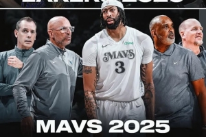 湖人20冠軍陣容中,濃眉、沃格爾(主教練)、基德(助教)、菲爾-漢迪(助教)、彭伯西五位成員如今都加入了獨行俠,