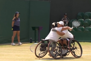 體育資訊7月13日訊 在剛剛結束的溫網輪椅網球下肢組女雙決賽,中國組合李曉輝/王紫瑩直落兩盤擊敗貝納爾/夏托,奪得溫網輪椅網球下肢組女雙冠軍。