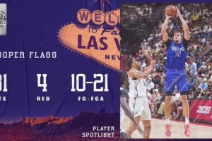體育資訊7月14日訊 夏季聯(lián)賽獨(dú)行俠69-76不敵馬刺,弗拉格21中10,三分9中3,罰球13中8砍下31分4籃板。