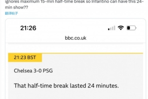 記者Martyn Ziegler社媒發文,質疑比賽中場休息表演時間太長,他寫道:“無視中場休息時間最長15分鐘的規定,只為讓因凡蒂諾有24分鐘的表演時間,國際足聯聲稱維護比賽規則的意義何在?”