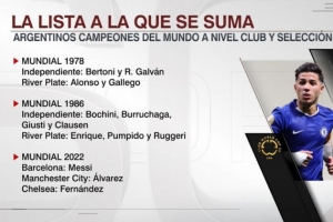 據ESPN統計,恩佐是第14位獲得過世界杯+世俱杯冠軍的阿根廷球員。