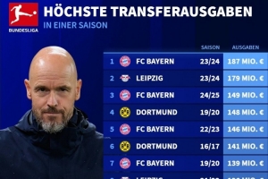 體育資訊7月16日訊 據德國轉會市場統計,勒沃庫森夏窗引援支出突破1億歐元,成為第5家單賽季引援支出多于1億歐的德甲俱樂部。