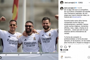 體育資訊7月17日訊 皇馬官方宣布巴斯克斯自由身離隊,前皇馬隊友卡瓦哈爾更新社交媒體曬照發長文深情告別巴斯克斯。