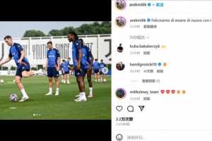 體育資訊6月13日訊 不久前,時隔許久回歸訓(xùn)練的米利克更新了社交媒體,表達了對重新與尤文展開訓(xùn)練的興奮。