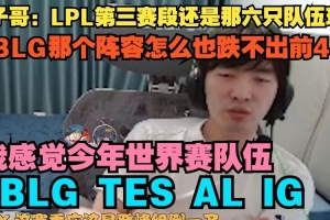Cryin:LPL第三賽段還是那六只隊(duì)伍玩嘛,BLG那個(gè)陣容怎么也跌不出前4,我感覺今年世界賽隊(duì)伍BLG TES AL IG。