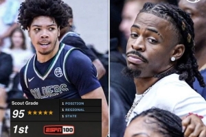 耐克青少年精英聯賽(EYBL),后年狀元大熱泰蘭-斯托克斯砍下22分9籃板帶隊取勝,莫蘭特現場觀戰,現場還有很多球探。