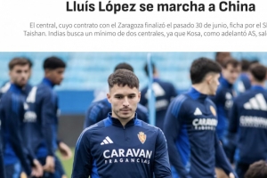 關于洛佩斯的去向,薩拉戈薩體育總監切馬-因迪亞斯一周前表示:“這是球員的個人決定,轉會市場充滿不確定性。他的合同6月30日到期,雙方都是自由身。若未來有機會再合作,那就太好了。”