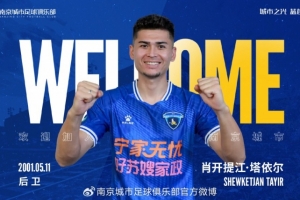 歡迎肖開提江-塔依爾重回南京城市大家庭,期待他在賽場上的精彩發(fā)揮!