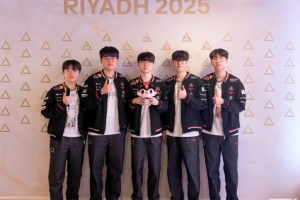 體育資訊7月22日訊 在2025 EWC收獲季軍后,T1官推分享隊員合照并配文:
