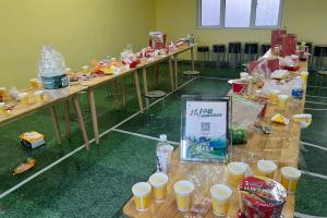 來到青島西海岸的客隊球迷區,人家賽區竟然在客隊球迷休息室里準備了一堆吃的喝的,包括但不限于肯德基、方便面、礦泉水。