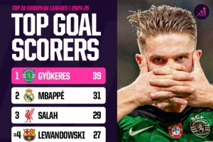 ■歐洲十大聯賽 | 2024-2025賽季最佳射手榜: