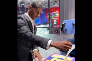 巴薩官推也曬出了拉什福德在亮相儀式上自己動手,為巴薩球衣印上14號的過程。