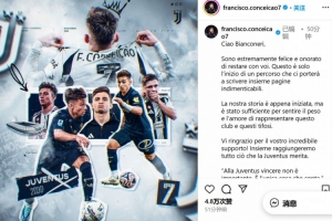他寫道:“你們好,Bianconeri。我非常高興和榮幸能夠繼續與你們在一起。這只是一個旅程的開始,它將帶領我們一起書寫難以忘懷的篇章。”
