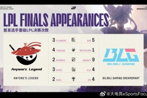 體育資訊6月14日訊 LPL第二賽段決賽BLGvsAL,官方發(fā)布了兩隊(duì)選手的決賽次數(shù)對比;