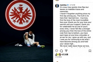 體育資訊7月25日訊 埃基蒂克正式從法蘭克福轉會利物浦,這位法國前鋒更新社交媒體發(fā)長文深情告別法蘭克福。