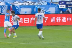 體育資訊06月14日訊 申花vs深圳比賽第8分鐘,蒂亞戈在禁區內倒地,裁判和var都認為不是點球。