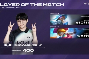 體育資訊7月26日訊 在剛剛結(jié)束的LCK常規(guī)賽的比賽中,ShowMaker兩局合砍7/3/22的戰(zhàn)績(jī),拿下DK對(duì)陣BFX系列賽MVP。