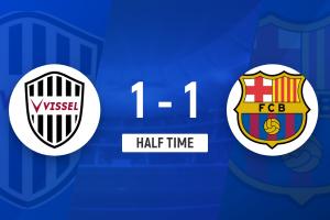 上半場比賽結(jié)束,神戶勝利船1-1巴塞羅那。