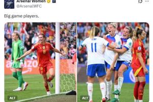 本場決賽雙方在常規(guī)時間戰(zhàn)成1-1。為西班牙進球的是效力于阿森納女足的馬里奧娜-卡爾登蒂。英格蘭方面,進球的魯索和助攻的凱莉都來自阿森納。