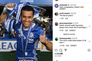 切爾西在社媒配文:佩德羅,生日快樂!??????