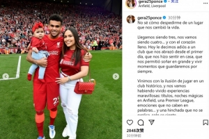 體育資訊7月30日訊 利物浦邊鋒迪亞斯已經(jīng)官宣加盟拜仁,他的妻子也通過社媒發(fā)文告別: