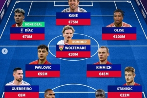 體育資訊7月30日訊 拜仁已經官宣簽下利物浦邊鋒路易斯-迪亞斯,在穆西亞拉和戴維斯重傷半年的情況下,《轉會市場》也據此預測了拜仁新賽季的主力陣容。