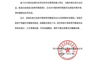 近日,我俱樂部已收到中國體育仲裁委員會正式受理案件的通知。我俱樂部將嚴格遵守仲裁程序規定,積極配合相關工作。我們相信中國體育仲裁委員會將依法獨立、公正審理此案,作出權威裁決,維護中國足球事業的健康發展。