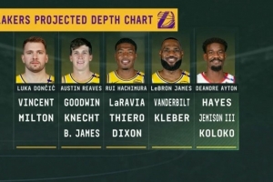 體育資訊8月1日訊 據DallasHoopsJournal.com記者Ashish Mathur報道,據多位消息人士透露,湖人新賽季的首發陣容預計為東契奇、里夫斯、八村塁、詹姆斯和艾頓。