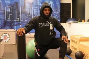 體育資訊8月2日訊 近日,詹姆斯曬出訓練照,背后是快船的Logo。
