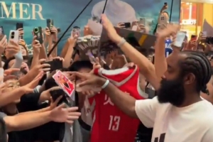 Tomer Azarly寫道:“詹姆斯-哈登一年一度的中國行讓廣州這家商場擠滿成千上萬的粉絲!從雷霆隊、火箭隊、籃網隊和快船隊的球衣到哈登 Vol. 7、8 和 9系列的球鞋,那里應有盡有?!?/p>