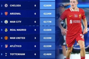 體育資訊8月4日訊 德轉(zhuǎn)盤點(diǎn)了截至目前各支球隊(duì)夏窗引援花費(fèi)榜單,其中利物浦簽下5人花費(fèi)2.94億歐居首,前四均為英超球隊(duì),具體如下(只包括支付轉(zhuǎn)會(huì)費(fèi)的球員):