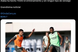 體育資訊8月5日訊 據記者Alberto Pereiro報道稱,阿拉巴完整地參加了皇馬全隊的合練,并且沒有纏任何繃帶。