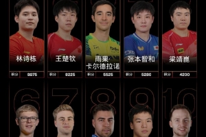 男單方面,林詩棟排名第一,王楚欽排名第二,巴西選手雨果-卡爾德拉諾排名第三,張本智和排名第四,梁靖崑排名第五,小勒布倫排名第六,莫雷加德排名第七,林昀儒排名第八,達科-約奇克排名第九,向鵬排名第十。