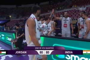 隨著印度最后強行出手三分不中,雙方常規時間結束時戰成了80-80,進入加時賽!
